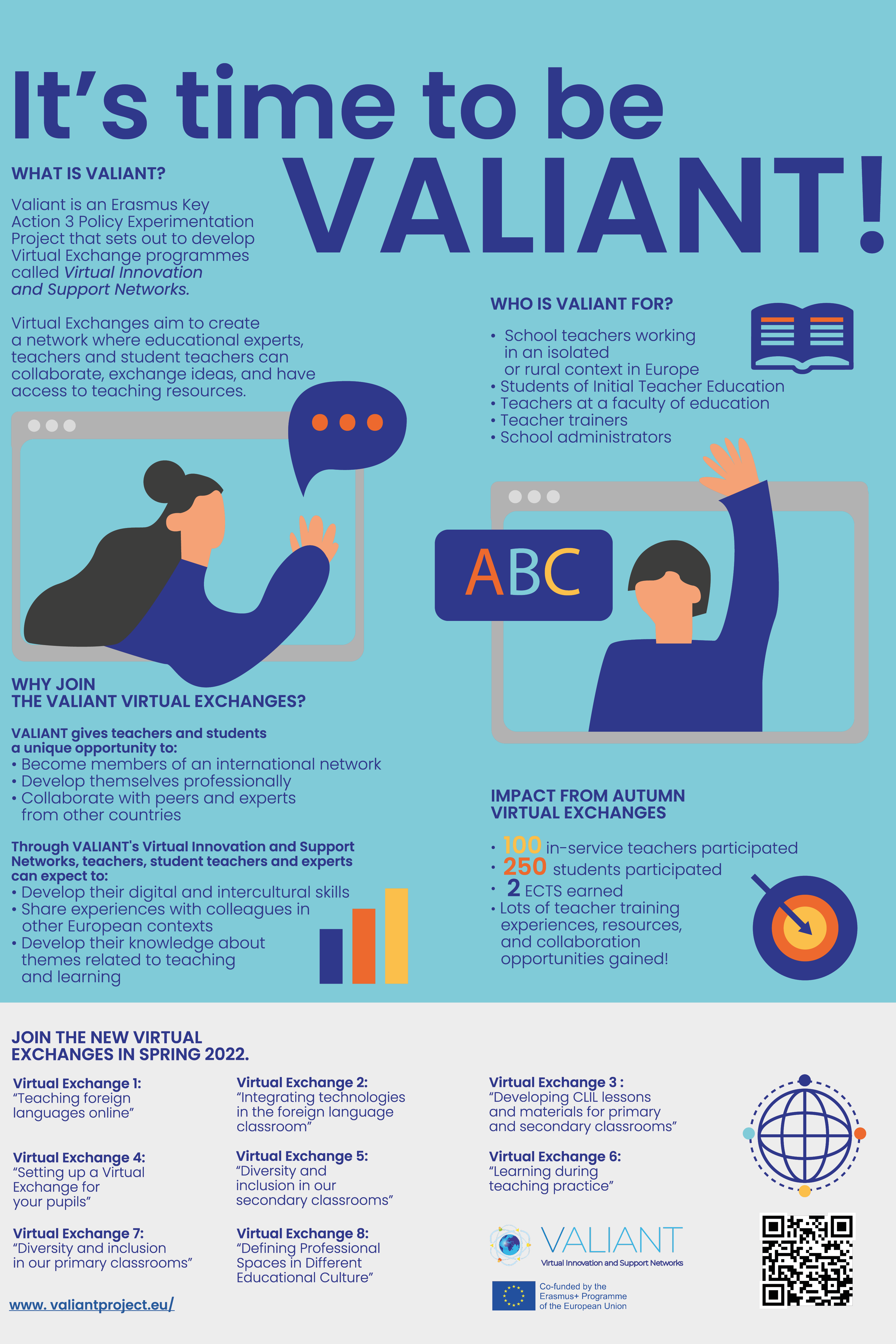 Os docentes em exercício de funções interessados em participar nas Virtual Exchanges do projeto poderão obter mais informações no link disponibilizado na infografia.